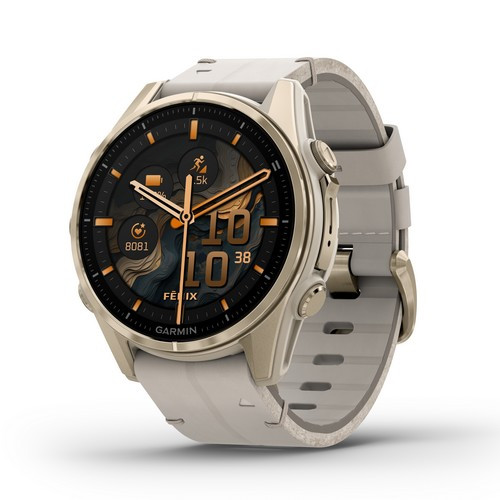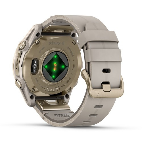 Garmin Fenix 8 AMOLED 43mm Sapphire Krémarany Acélszürke/Homokkő bőrszíj + Homokkő-Szürke szilikon szíj